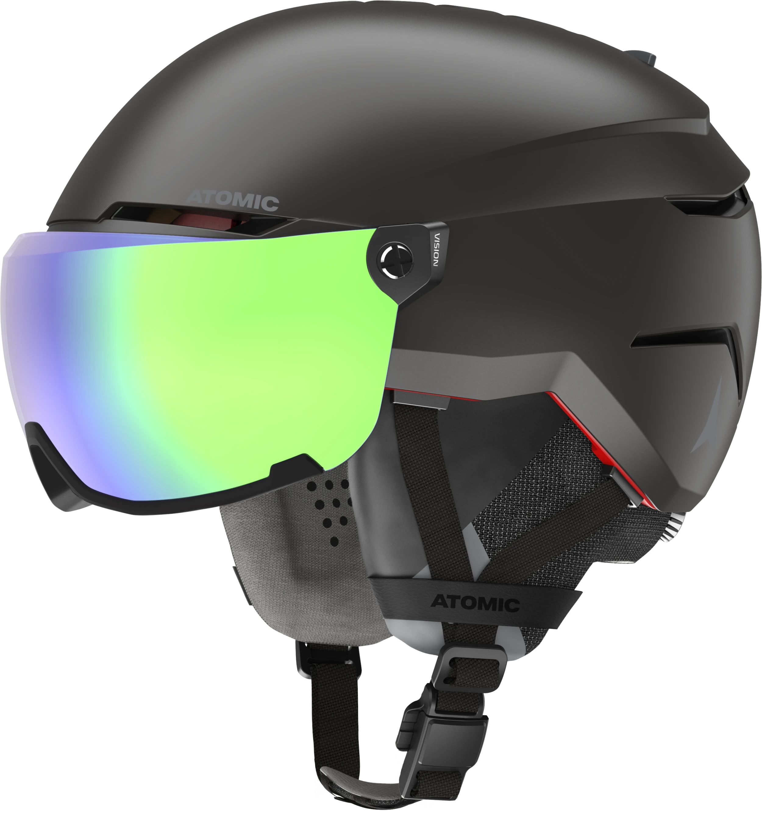Deze helm is uitgerust met het AMID (Atomic Multi-directional Impact Deflector) systeem. Dit ingenieuze systeem zorgt voor een uitstekende energieabsorptie en verspreiding bij een impact, waardoor het risico op letsel wordt verminderd. Met deze geavanceerde bescherming kan je vol vertrouwen de berg af, wetende dat je goed beschermt wordt. Dit in combinatie met de hardshell constructie zorgt ervoor dat deze helm enorm stevig is, en daarmee optimale veiligheid biedt. De helm is uitgerust met een dual-density foam systeem, gecombineerd met de Holo Core constructie, wat zorgt voor een comfortabele pasvorm en optimale demping. Het schuim past zich aan op basis van jou hoofd, wat je de ultieme pasvorm geeft. Door het geïntrigeerde visier hoef je met deze helm ook niet meer na te denken aan een losse goggle. Door de groote van het vizier en de HD Lens technologie die in de lens verwerkt zit heb je ultiem zicht op de bergen. Hierdoor kan je goed alle details blijven zien op de pistes. Verder kan je, als je een gewone bril draagt, dit vizier nog wat ruimer maken door bijgeleverde stukken, waardoor het vizier nog wat meer ruimte geeft voor je bril.